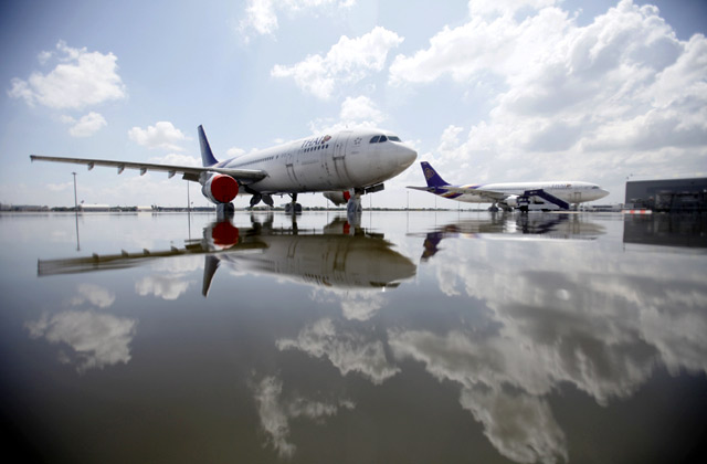Beberapa pesawat terparkir di apron Bandara Don Muang, Bangkok. Sementara banjir ini telah menewaskan setidaknya 366 orang. Reuters/Stringer.